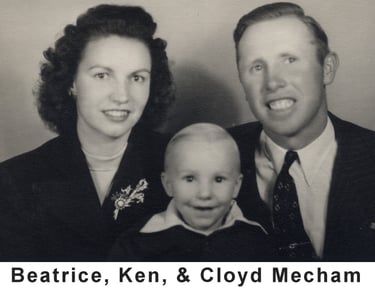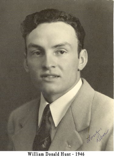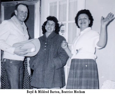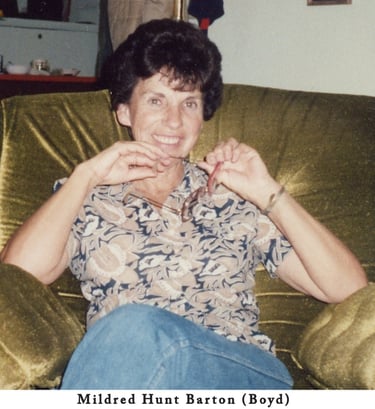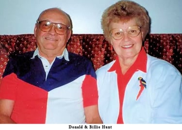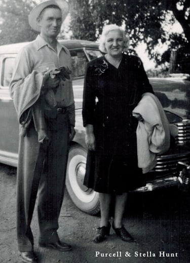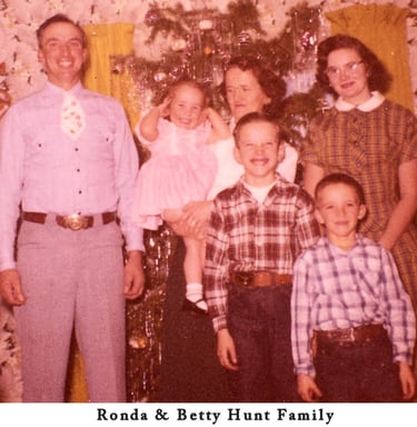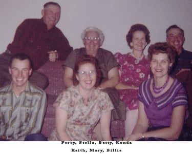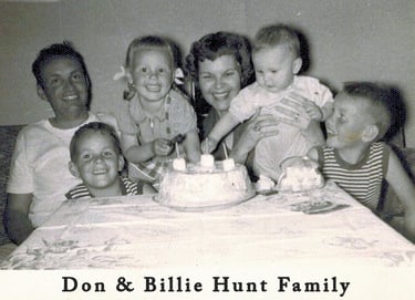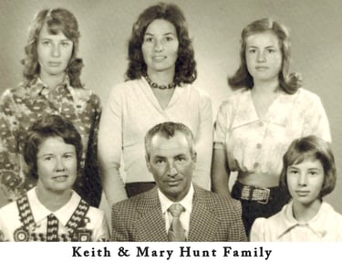 Pictured are: Purcell & Stella Hill Hunt, Beatrice Hunt & Cloyd Mecham family, Ronda & Betty Patterson Hunt family, W. Donald and Billie Gooing Hunt family, J. Keith and Mary Blackwell Hunt family, Mildred Hunt & Boyd Barton family